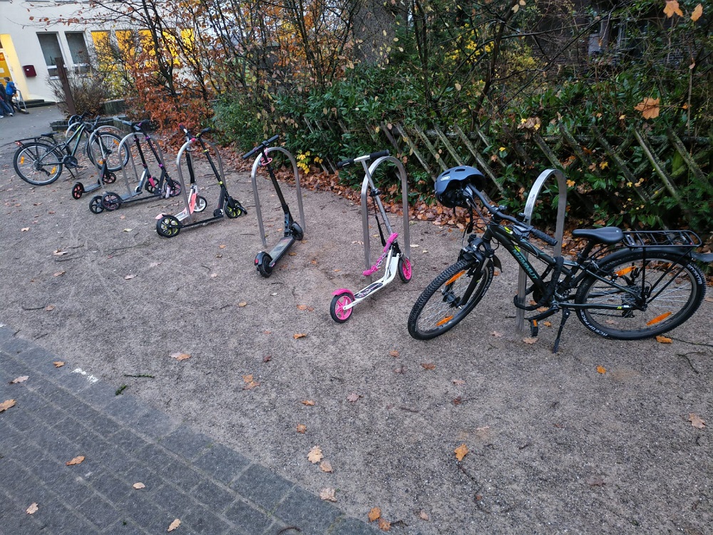 Die neuen Abstellmöglichkeiten verbessern nicht nur die Situation für den Schulbetrieb, sondern kommen auch den Sporttreibenden in den Nachmittags- und Abendstunden zugute. Auch der Nachhaltigkeitsgedanke spielte bei der Umsetzung eine wichtige Rolle: Auf einer oberen Fläche am Zugang Twieluchtstraße wurden gut erhaltene Fahrradbügel einer früheren Schulstandortnutzung wiederverwendet.