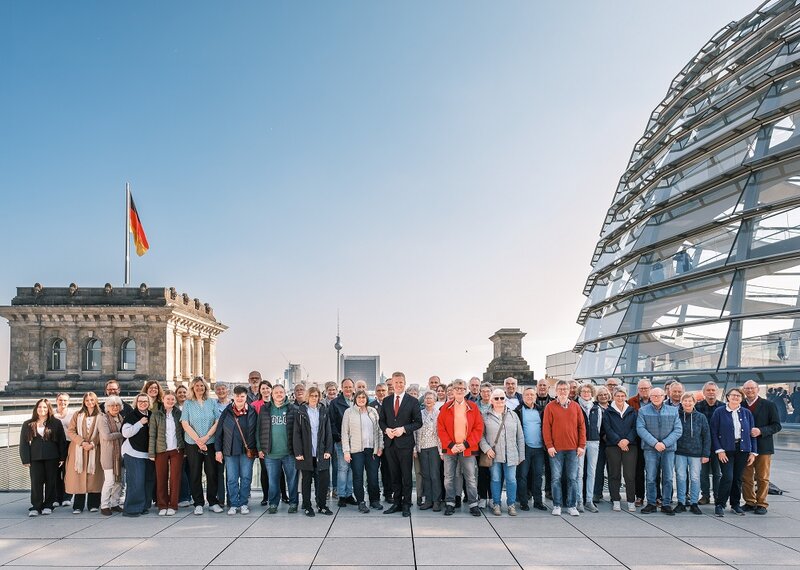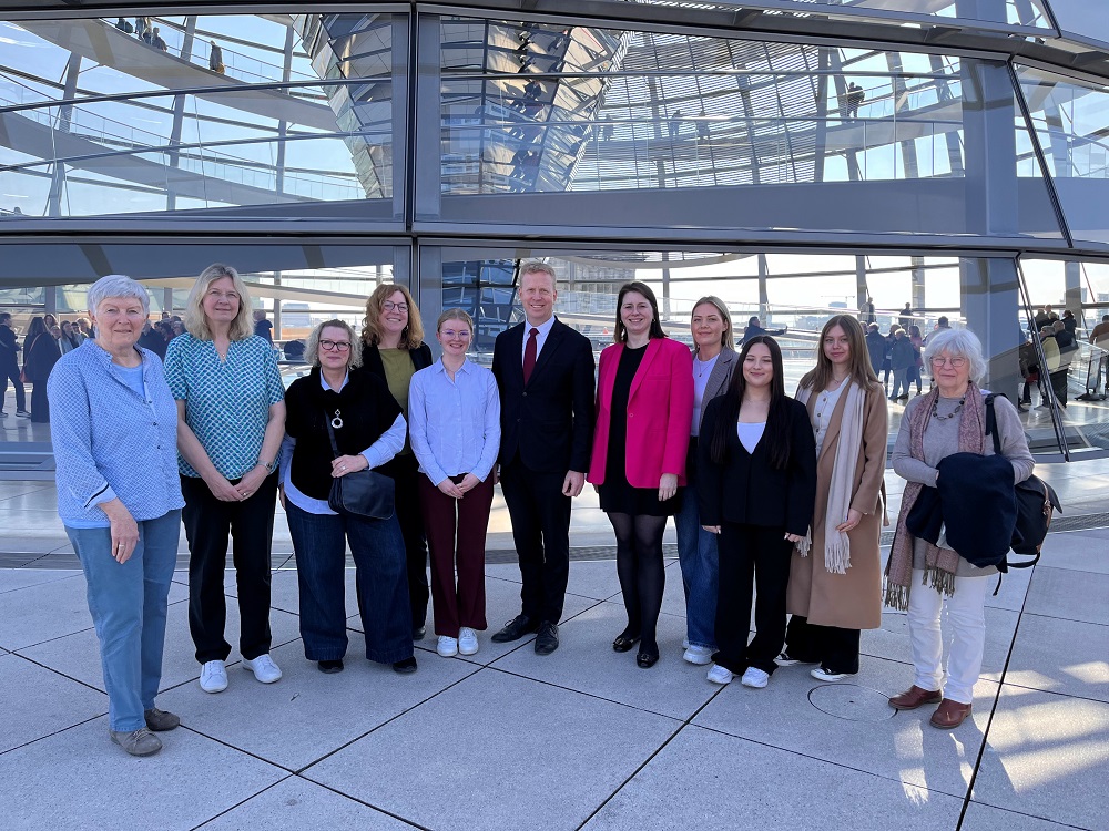 Nach dem Gespräch ging es für die Gruppe noch bei schönstem Frühlingswetter auf die Reichstagskuppel. Neben dem Besuch im Bundestag standen auch ein Besuch im jüdischen Museum, eine Führung in der Stasi-Gedenkstätte Hohenschönhausen und eine Stadtrundfahrt auf dem Programm der Besuchergruppe.