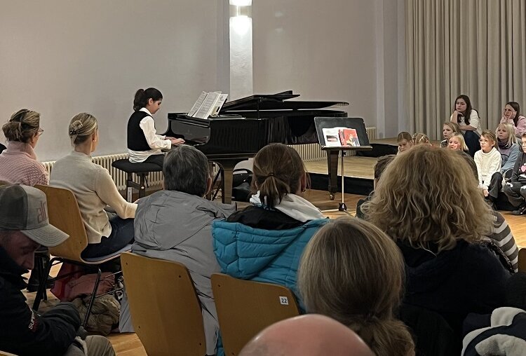 Einen weiteren Höhepunkt bildeten die Klavierbeiträge von Rahel Basna Hanne. Sie nutzte das Adventskonzert zugleich als Vorbereitung für den Wettbewerb „Jugend musiziert“, an dem sie Ende Januar 2026 teilnehmen wird. Am Flügel spielte sie unter anderem die „Toccata“ von Carlos Seixas, eine skandinavische Ballade sowie den „Kleinen Scherz“ von Dmitri Kabalewski und erhielt dafür großen Beifall.