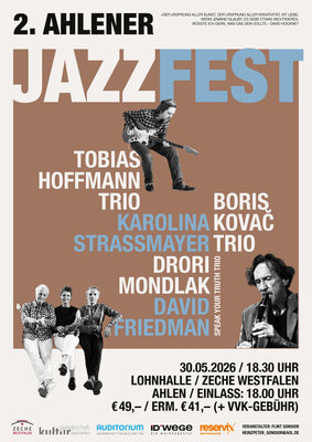 mit dem Tobias Hoffmann Trio, dem Speak Your Truth-Trio Feat. Karolina Strassmayer, David Friedman, Drori Mondlak sowie dem Boris Kovač Trio