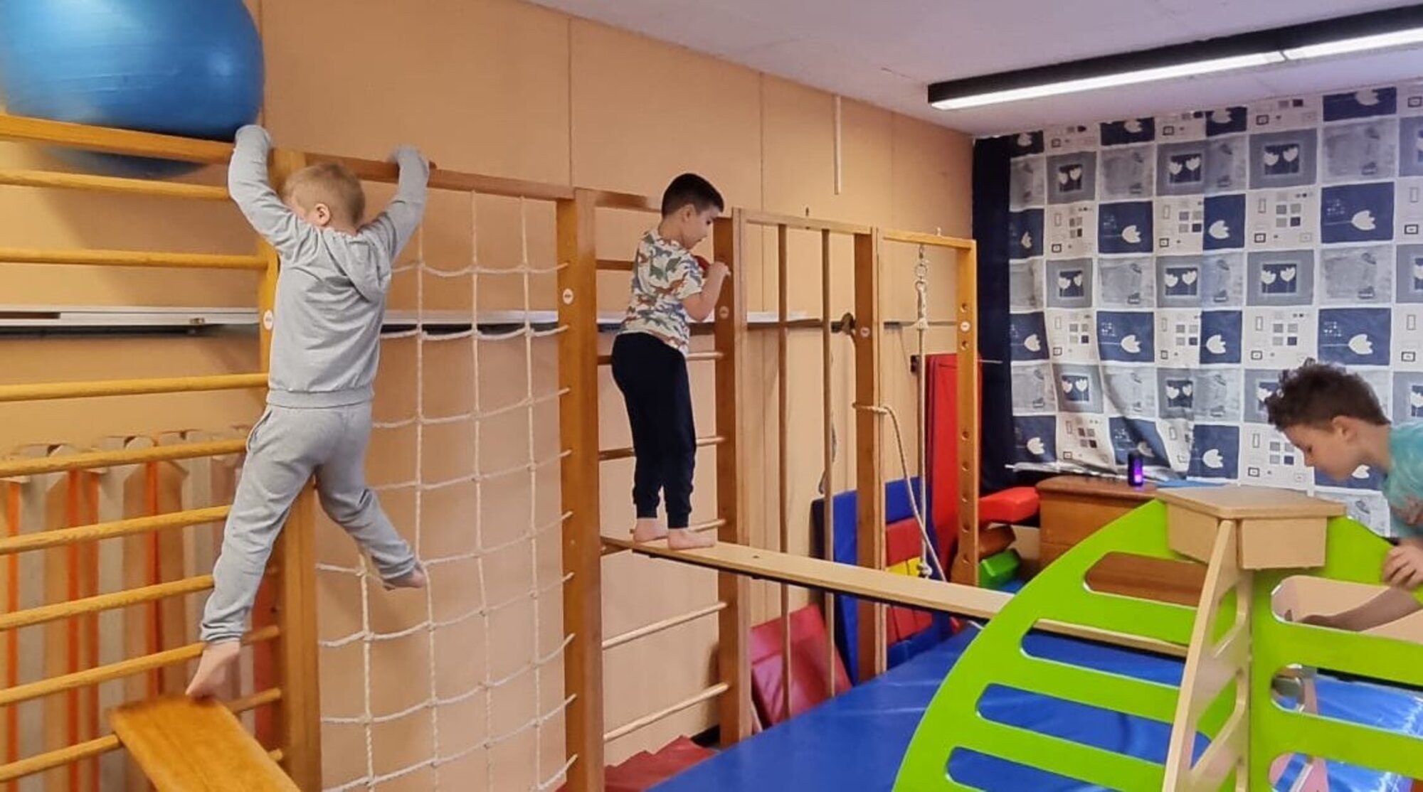Um den Kindern so viel Bewegung wie möglich zu bieten, geht jede Gruppe einmal pro Woche in die Turnhalle, um sich dort entweder frei oder angeleitet zu bewegen.