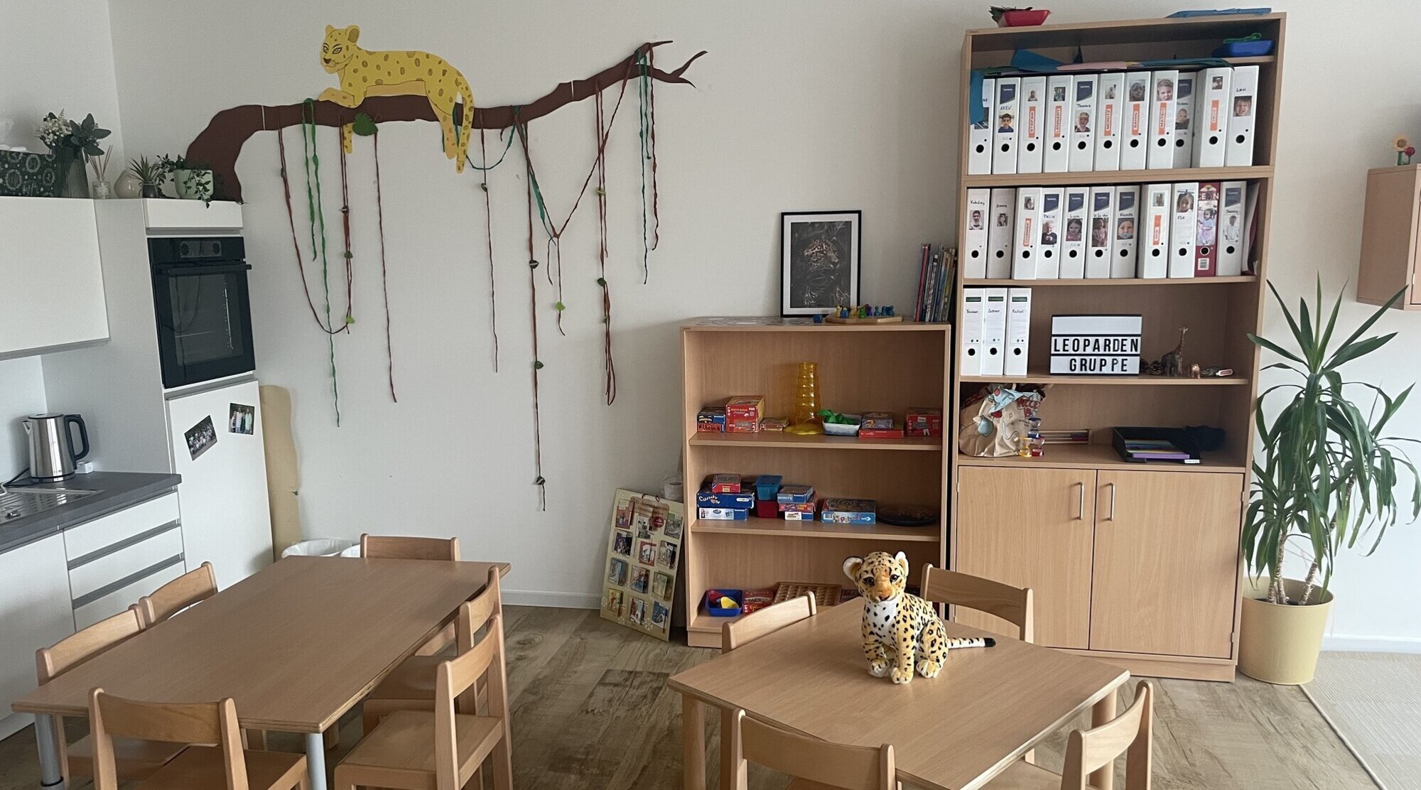 • Ein Mehrzweckraum mit zwei Abstellräumen und Zugang zu einem Behinderten-WC, welcher als Familienzentrumraum und als Mensa für unsere Krokodil- und Leopardengruppe genutzt wird